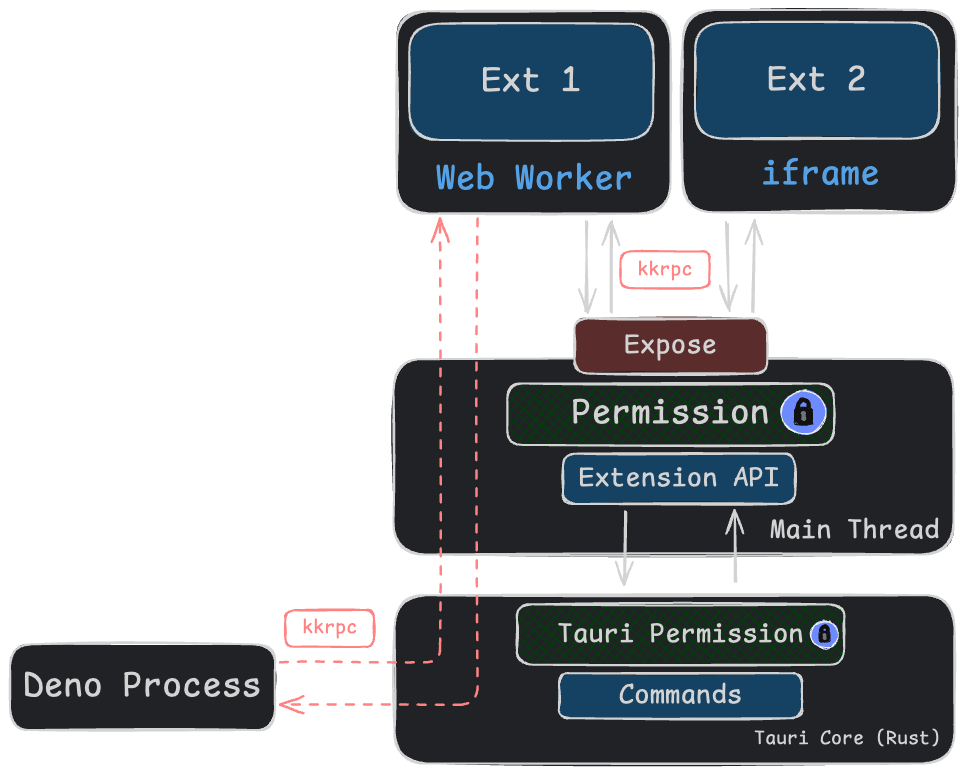 The communication between KK and the extension is done through the kkrpc protocol.